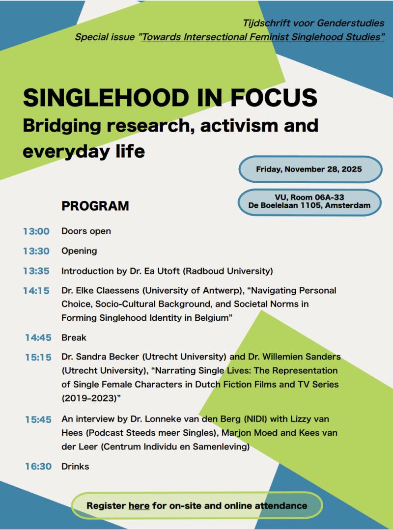 Tijdschrift voor Genderstudies lanceert haar speciale uitgave Towards Intersectional Feminist Singlehood Studies tijdens een evenement op 28 november.
